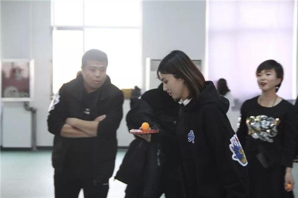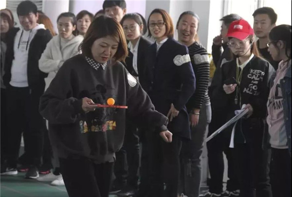 在比賽中隊友們相互鼓勵,相互配合。乒乓球接力不僅考驗隊員的速度、耐心,更考驗著隊員們團(tuán)結(jié)協(xié)作的能力,以及彼此的默契程度?,F(xiàn)場游戲活動中,比賽氣氛和諧快樂,大家都被簡單的互動游戲所感染,一陣陣吶喊助威聲從運動場上傳來。