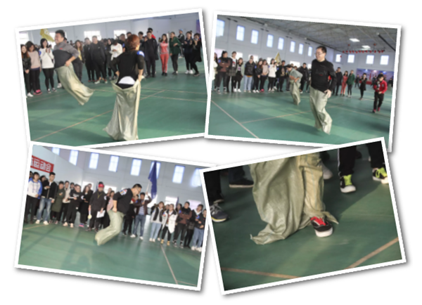 此次“袋鼠跳”全程往返為20米,以麻袋為道具。比賽規(guī)則是,隊員們排好隊,站在起跑線上,聽到發(fā)令后,進(jìn)入麻袋,并向前跳躍,然后到了折返點后再跳回來,第二人接力,以此類推,直至4人全部完成,用時最短隊伍名次列前。