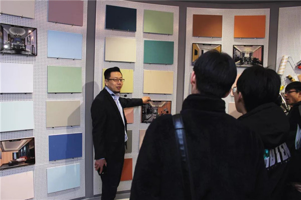 參觀完總部后,在解說員的帶領(lǐng)下,河北環(huán)境工程學院一行人來到了我公司品牌體驗展示中心。對于我司相關(guān)環(huán)保產(chǎn)品大家都還比較陌生,常凱??偂⒗钣聞羁偡謩e對室內(nèi)污染物治理展廳、企業(yè)綠色裝飾材料展廳進行了細致介紹,讓大家對凈化原理及環(huán)保材料等有了一個全新的認識!
